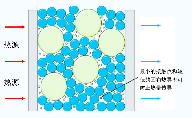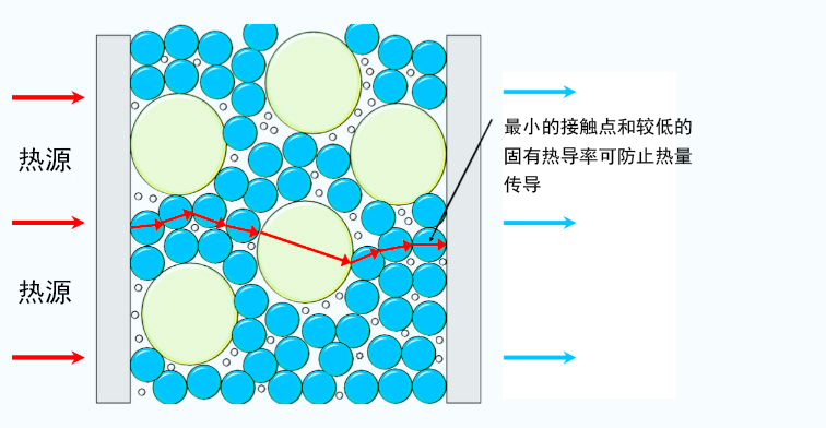 熱傳導熱傳導描述固體中的熱傳導。由于微孔材料的分子結構和所有的顆粒是球形的,顆粒之間的接觸點是無限小, 結果是一個非常低的固相傳導。